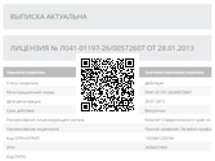 Лицензия № Л041-01197-26/00572607 ОТ 28.01.2013 на осуществление медицинской деятельности
