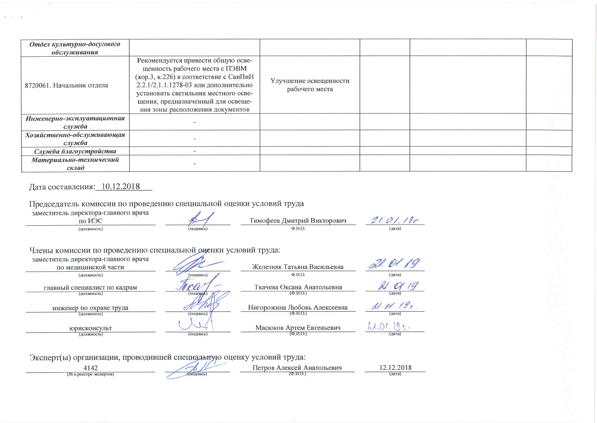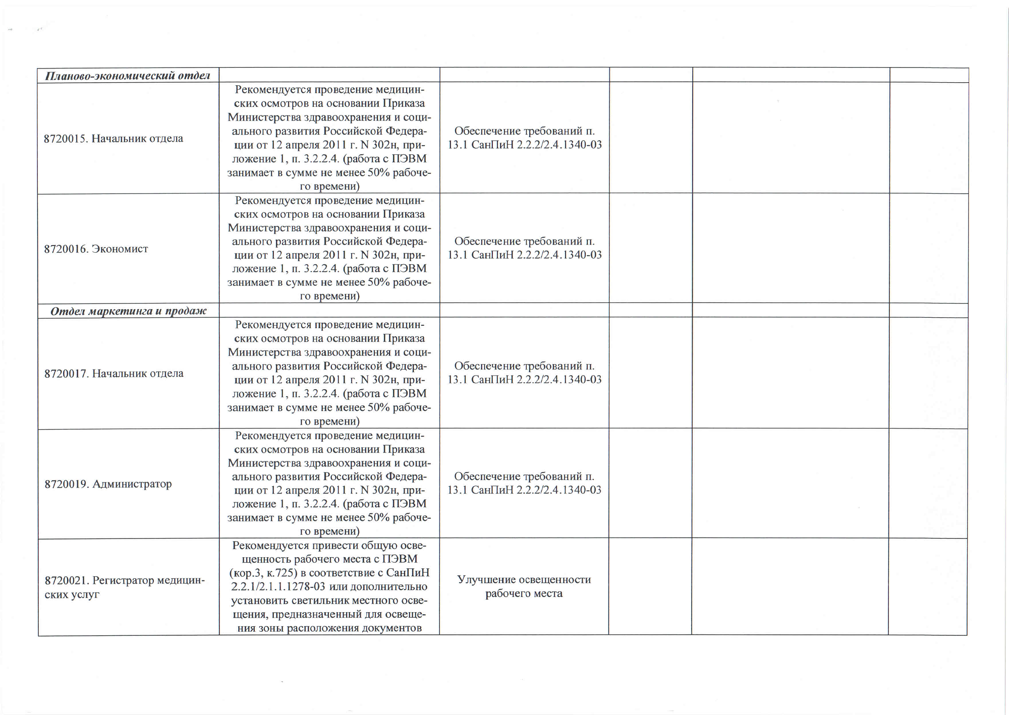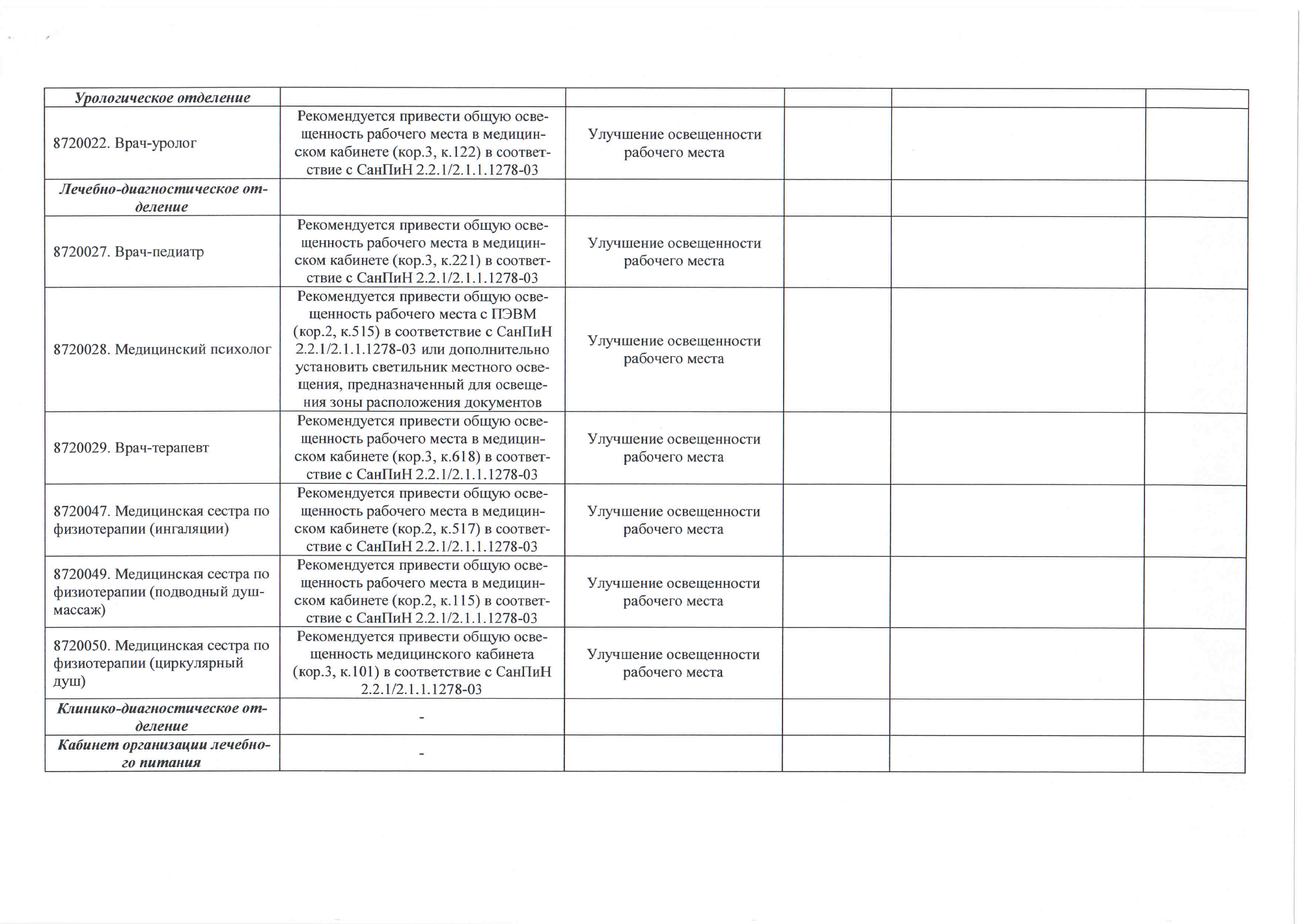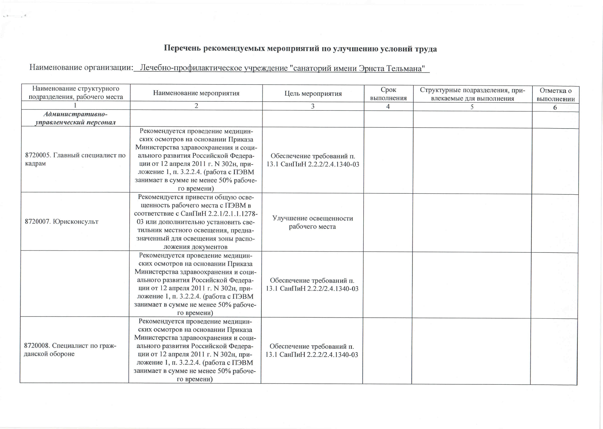 Перечень рекомендуемых мероприятий по улучшению условий труда